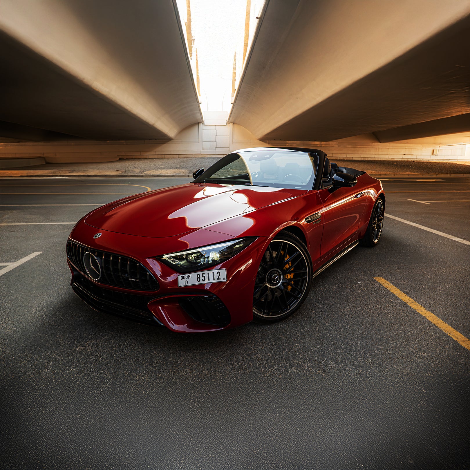 Mercedes SL63 AMG, AMG performansı, şık tasarımı ve üstü açık sürüş keyfiyle Dubai’nin en özel cabrio modellerinden biridir.